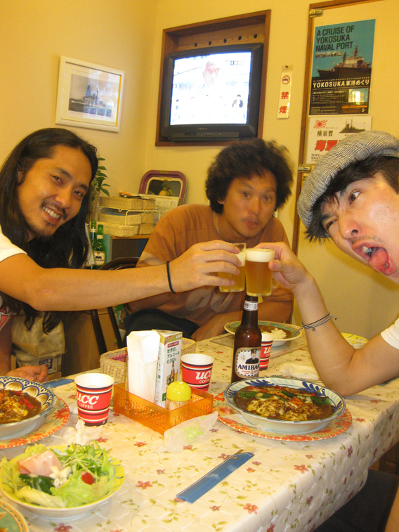 October, 04 2009 Posted by TEAM 2055 やってきました はい! ここは横須賀、うみかぜ公園。 気づいたら暗っっ。もう日が落ちるのが早いですね~ 横須賀の夕暮れを背にone shot!!! 横須賀来たっつー事で皆で仲良く海軍カレーをmake! チアーズ! Tweet BACK NEXT