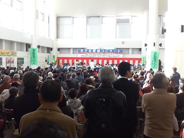 向かう途中駅の階段を下りていると心地よい楽器の生音が‥‥どっかの大人連中のブラスバンド部でした。30秒ほど聞いて先を急ぎました。 ブラボー!!