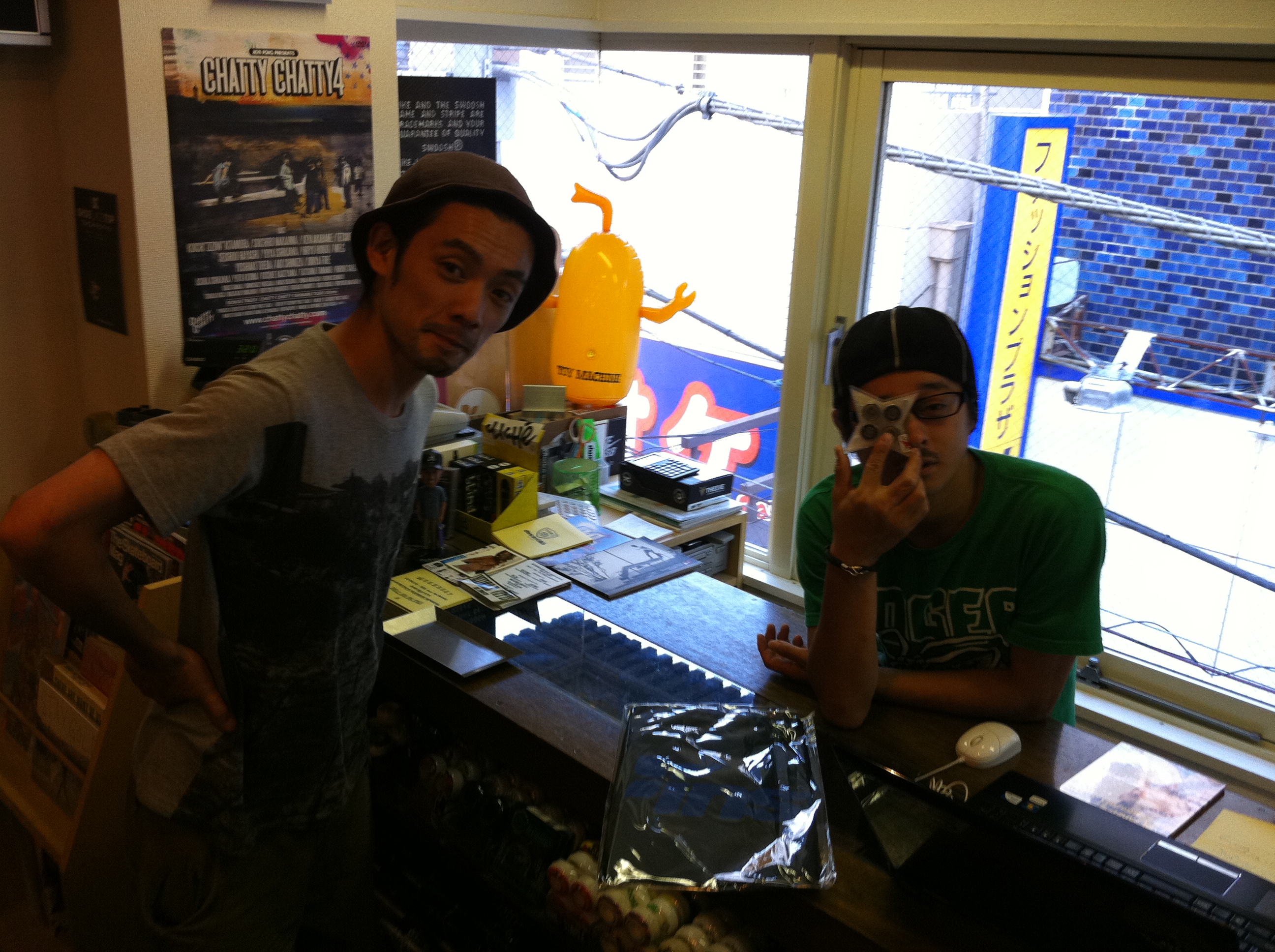 ここ最近TWO ウィールパワースライドの特訓のせいでテールの弾き音がすっかり情けない事になってしまっているのとウィールのパンク具合が超ヤバかったので思い切ってグアム行く前に新調しちゃいました!ほぼOPENと同時ぐらいにINSTANT突入。ケータさんはおなじみですよネ、左の方はサトルさん。ただ今研修中との事、がんばって下さい!