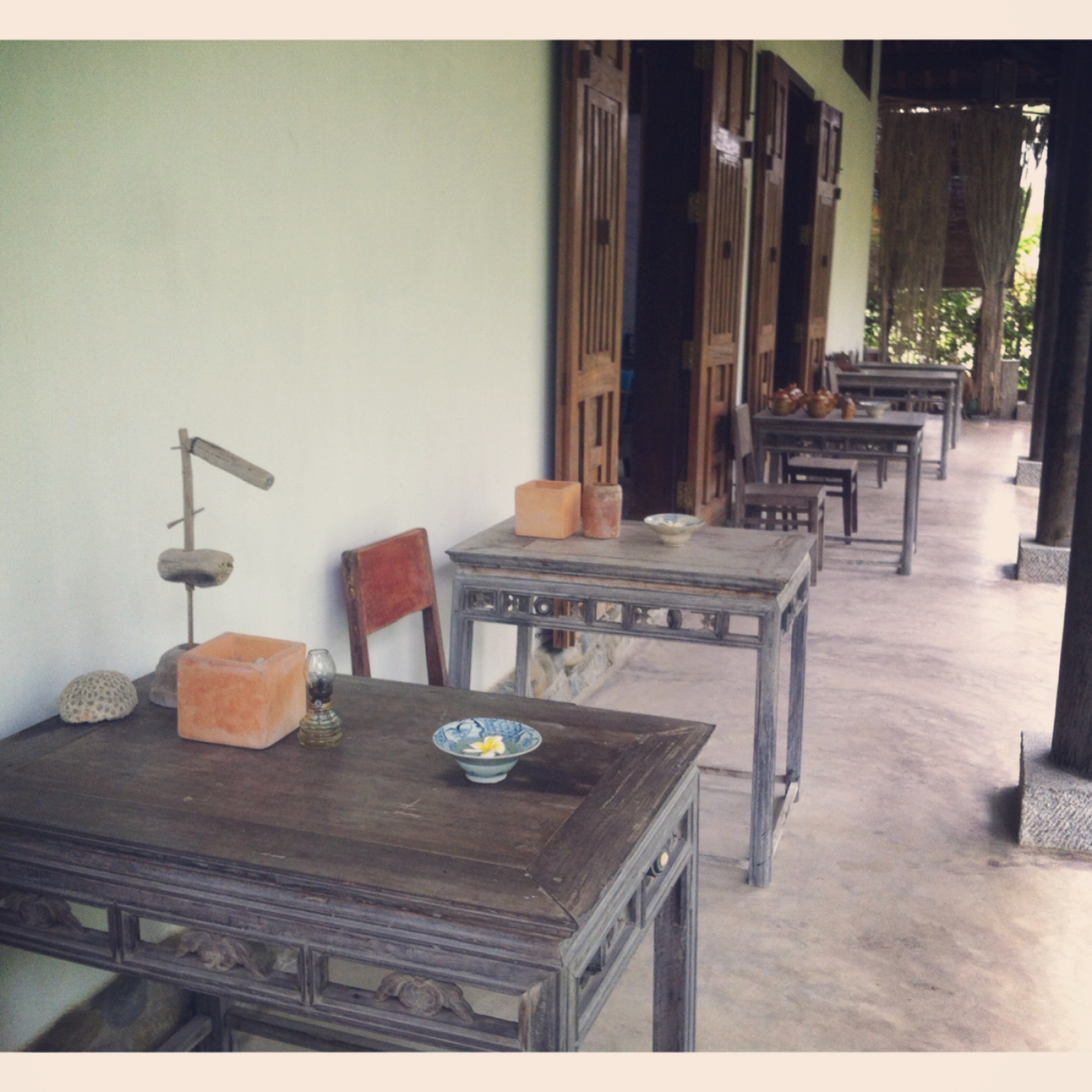 ベトナム二日目の朝は、天井から指す光が眩しくて、7時頃に目が覚めた。デニムの短パンと白いTシャツの下にビキニを着て部屋の外に出た。