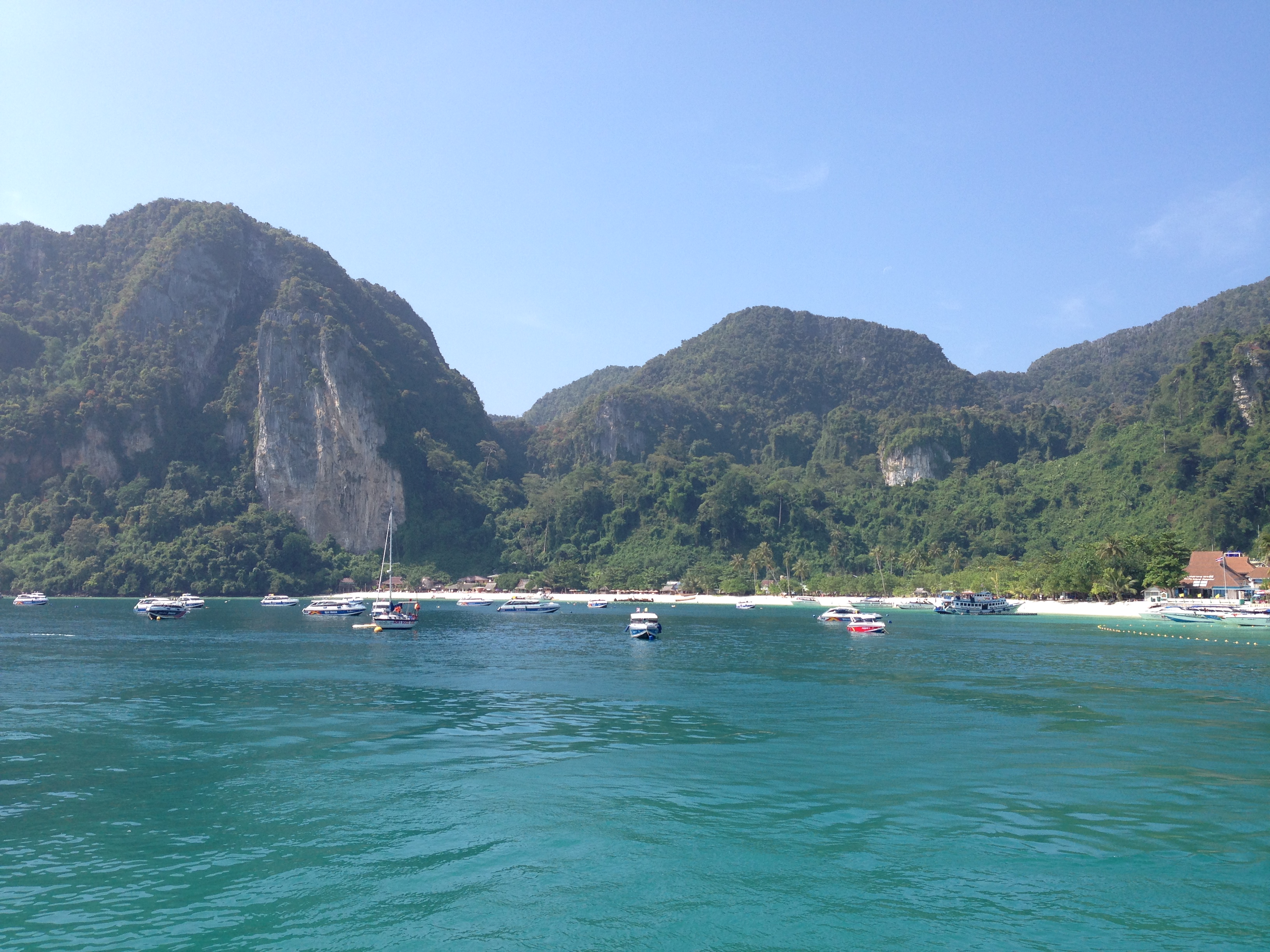 今回の旅のパートナーと出会ったのは5年前、仕事でアフリカのセネガルへ行った時だった。それから、仕事で何度も関わりながら、二人でサイパンの海でスキューバに挑戦したり、日本国内の様々なフェスや、パーティーや、楽しくもドラマチックな日々を一緒にくぐり抜けてきた。いつも彼女がいれば、どこでもどうにかなると信じている。早朝で道路が空いていた事と、飛行機のチェックインをオンラインで済ませていた事で、結果飛行機は逃さず、朝8時頃には太陽がまぶしいプーケットに到着した。相乗りの車で港まで。港からは2階建ての大型フェリーで、約3時間、Phi Phi島へ向かう。どうにかなるのだ。