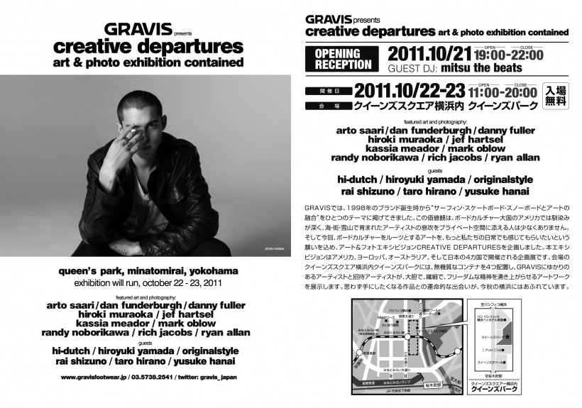 October, 22 2011 Posted by Yuh Yanagimachi gravisの 今週の週末(10/22、23)みなとみりゃーでやってる催し物はホワッホーだよ!!まさかの観覧車側のクィーンズのあの広場。レセプション会場にはあのdylan riederもいてちょっとワクワクしちゃったよ。この動画を見てもらえればわかると思うけど彼には全てがある。憧れ過ぎて焦げる。 Dylan. from Gravis Footwear on Vimeo.アート展やデモの情報はこちら!! Tweet BACK NEXT