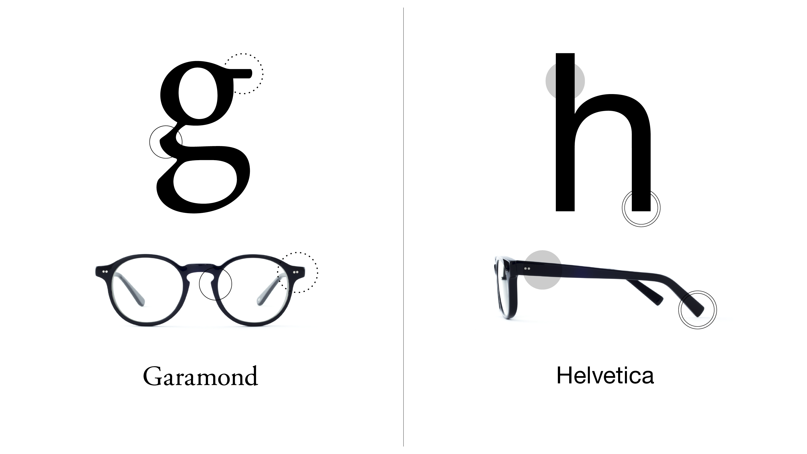文書によるコミュニケーションにおいて、書体(typeface)のデザインがメッセージの伝わり方に影響を及ぼすように、眼鏡のフレームの微妙なデザインの違いは、それをかける人の印象に変化をもたらします。